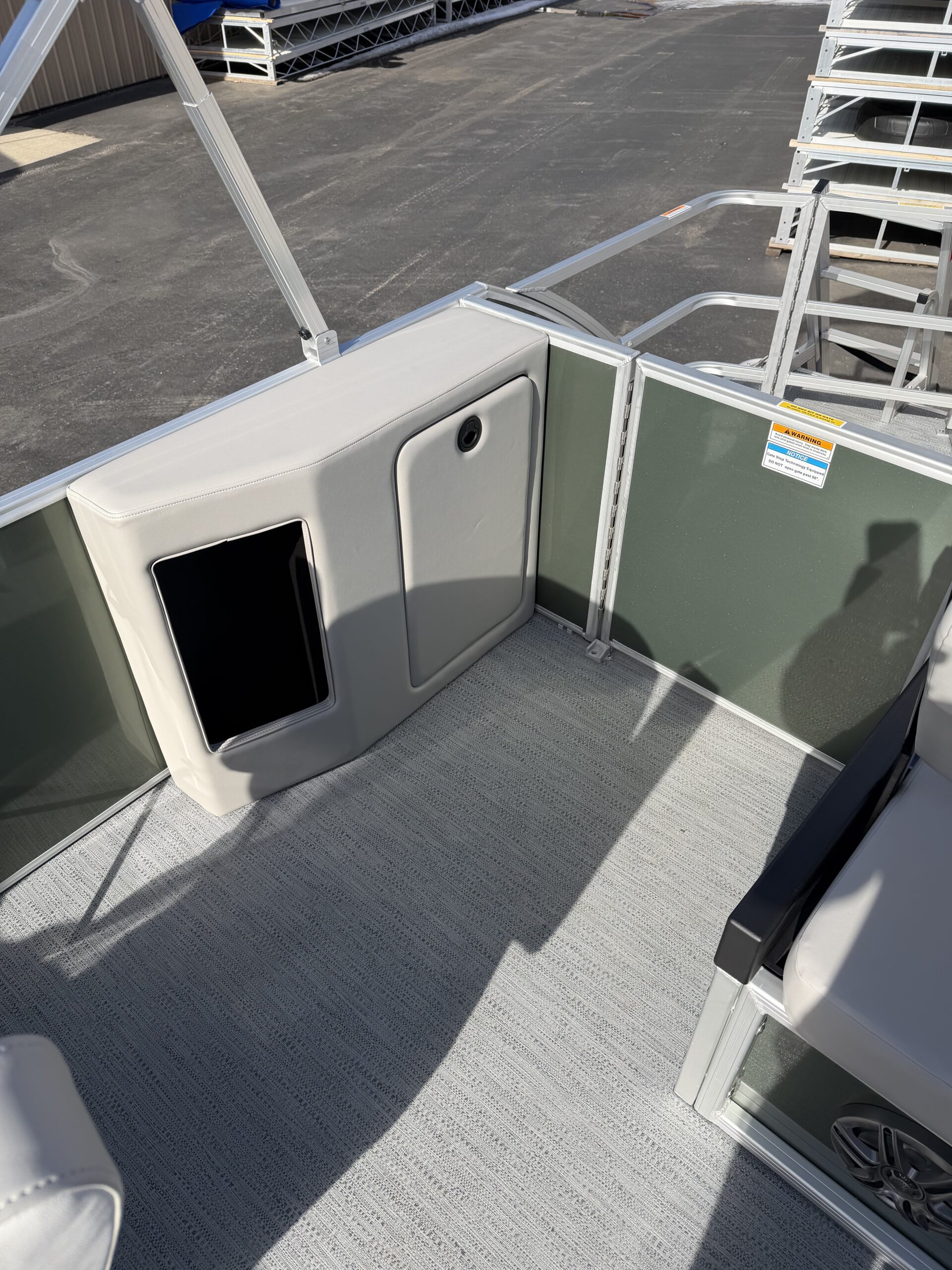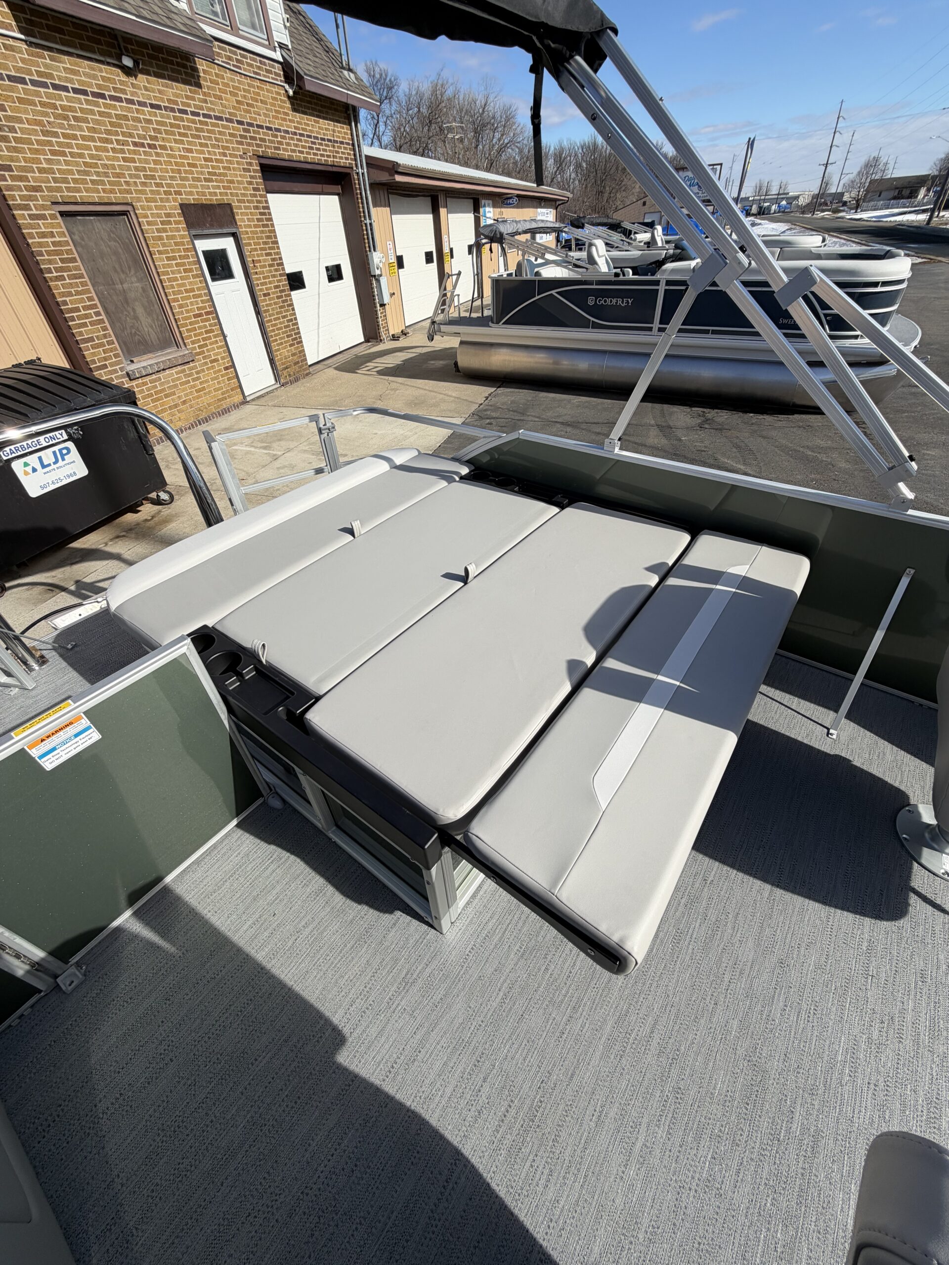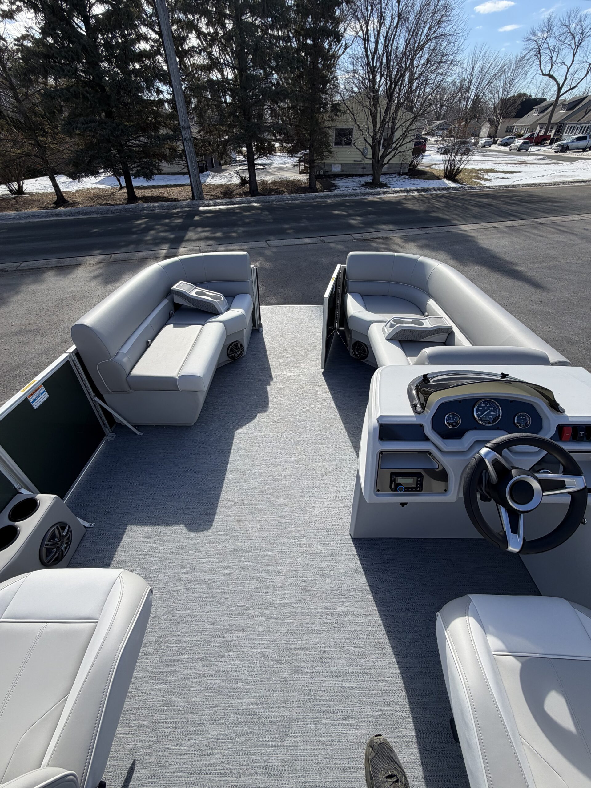 25' Tubes, Play pen cover, Co-Captain seat, Easy climb stern ladder, Reclining captain seat, tilt steering wheel, Ski tow bar, Clarion BT radio w/ inputs, Docking lights, vinyl weaved flooring, 2 movable cup holders